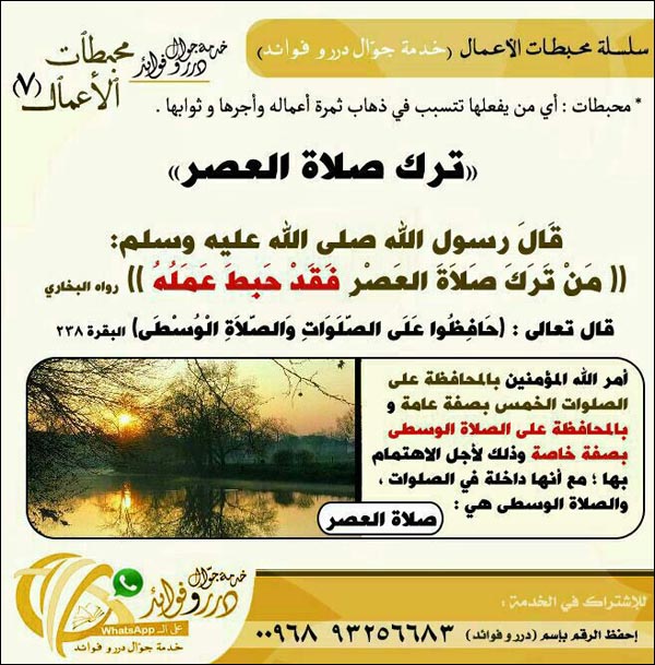 عنوان المقال: » سلسلة محبطات الأعمال [7]: ترك صلاة العصر