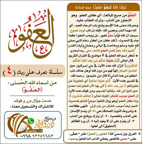 عنوان المقال: » سلسلة تعرف على ربك [4]: من أسماء الله الحسنى (العَفُوّ)