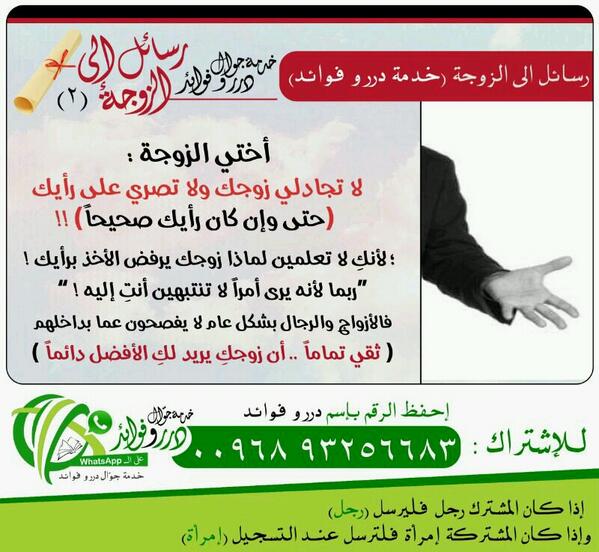 عنوان المقال: » رسائل إلى الزوجة [2]: لا تجادلي زوجك ولا تصري على رأيك حتى وإن كان صحيحاً