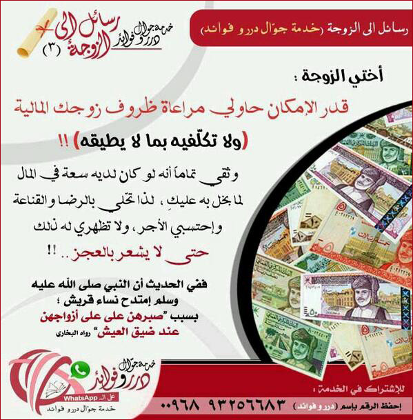 عنوان المقال: » رسائل إلى الزوجة [3]: حاولي قدر الإمكان مراعاة ظروف زوجك المالية ولا تكلفيه بما لا يطيقه