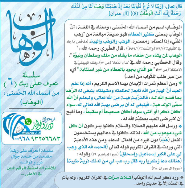 عنوان المقال: » سلسلة تعرف على ربك [6]: من أسماء الله الحُسنى (الوهّاب)