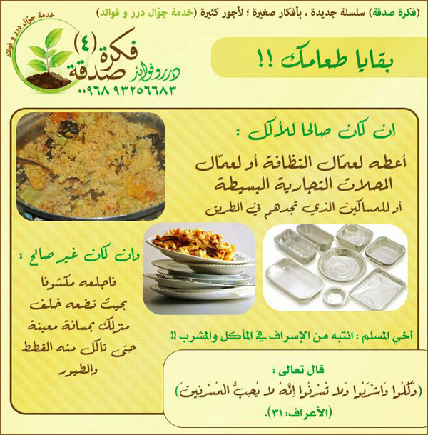 عنوان المقال: » فكرة صدقة [4]: بقايا طعامك ..