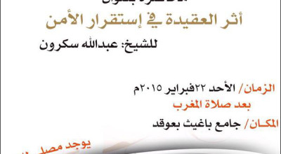 » ستقام بمشيئة الله محاضرة للشيخ مصطفى يمني بعنوان: (لماذا لا نتغير) وذلك بجامع باغيث (بعوقد الجنوبية) الإثنين 2/23 بعد صلاة المغرب .. يوجد مكان للنساء