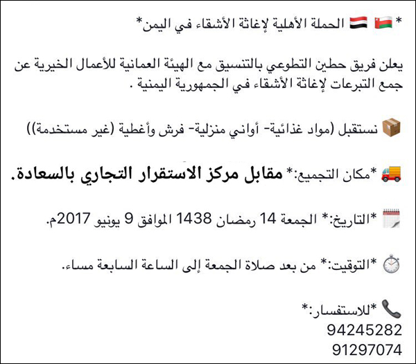 عنوان المقال: » الحملة الأهلية لإغاثة الأشقاء في اليمن